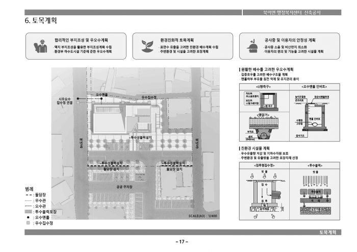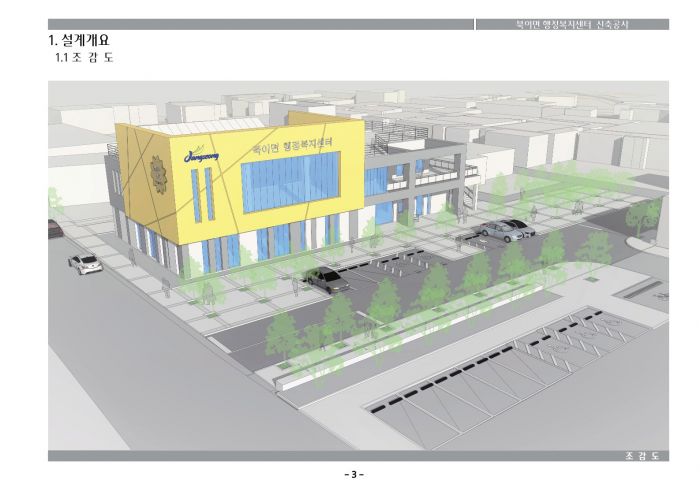 -건물배치 및 내외부 공간계획을 수립 등 사업부지 조건 및 주변환경을 최대한 활용 및 고려하여 행정복지센터에 적합한 설계의도 구현