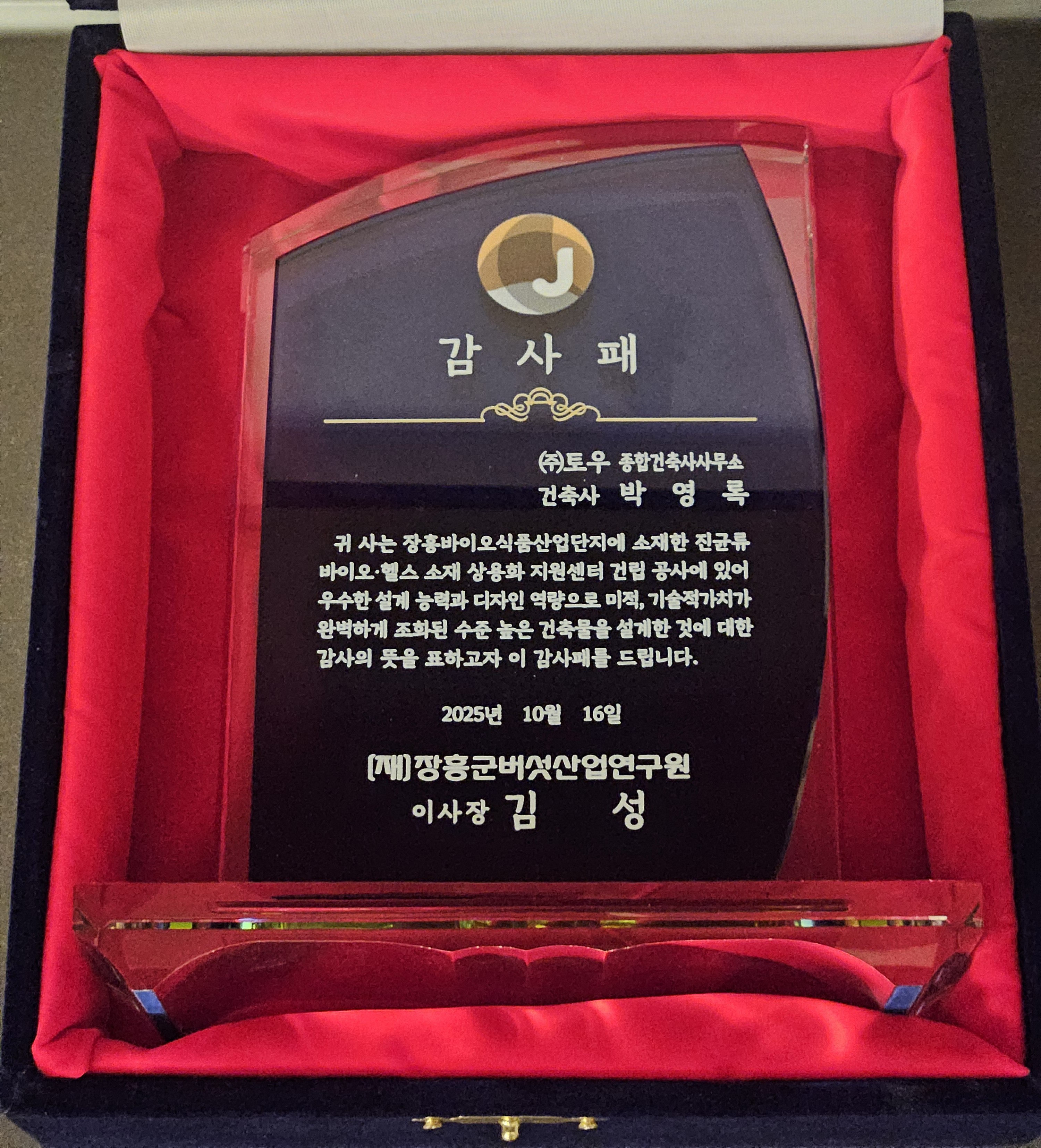 대한건축사회 감사패 수상